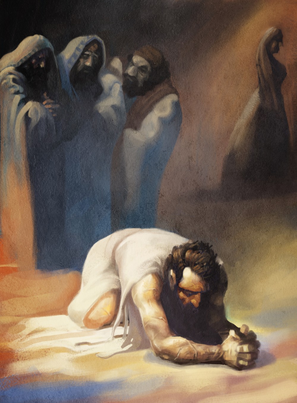 이럼에도 욥은 겉옷을 찢고 머리털을 밀고 땅에 엎드려