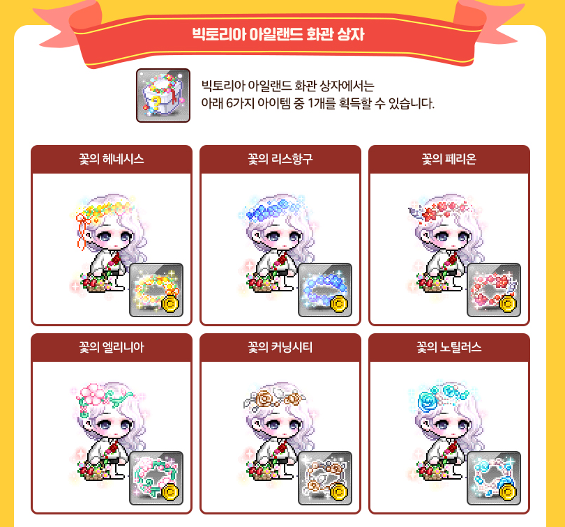 아래 6가지의 아이템 중 1개를 획득할 수 있습니다.
