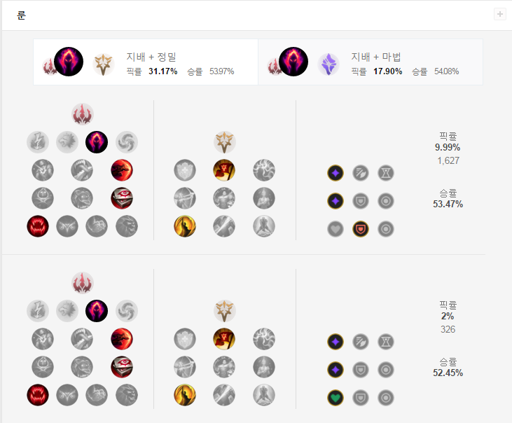 OP급의 성능을 자랑하는 포킹 챔피언. 일단 쿨감 이속 자원 소비 없음 등 이즈리얼에게 도움이 되는 버프가 한두 가지가 아니라 자체로 강력해 초반에 위력을 뽐내는데, Q는 초 근거리만 아니면 계속 쿨타임이 즉시 돌아서 붙은 적을 순식간에 녹이는 건 둘째치고, 라인을 3~5초만에 밀기도 하고 계속 Q를 박으면 10초 즈음마다 궁을 쏴재끼는 이즈리얼도 볼 수가 있다. S급 이동기인 비전 이동도 Q 몇번 맞추면 즉시 사용이 가능할 정도여서 물기도 힘들다. 정말 상대팀에 강력한 CC가 존재하는 것이 아니라면 초반에 말려놓기가 너무 힘들다. 이런 점 때문에 룬도 도벽 삭제 전부터 정복자나 어둠의 수확을 선호하는 편이었다.