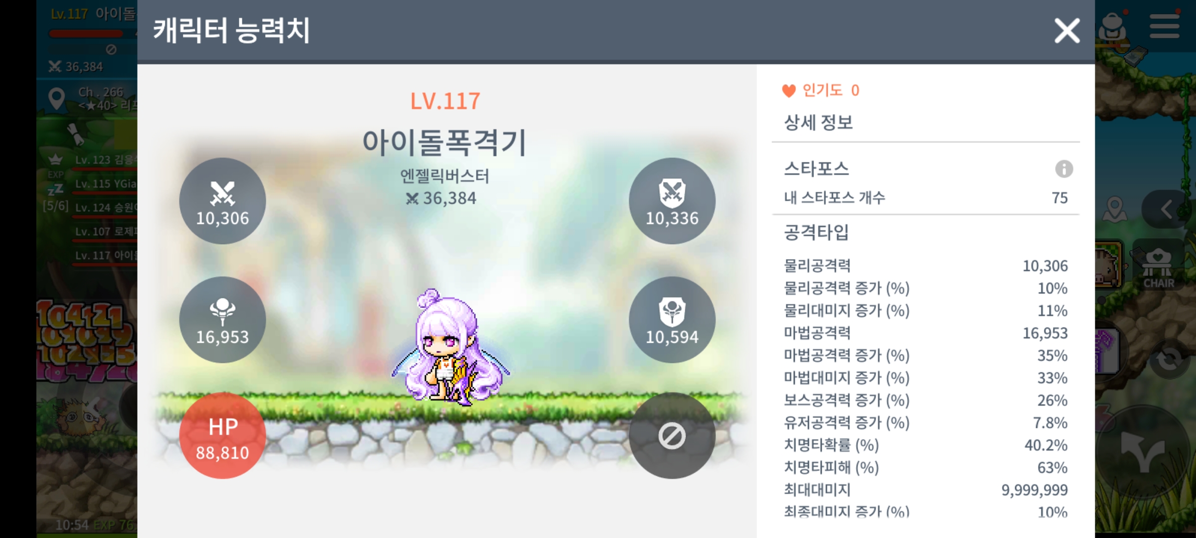 저는 어제부터 열심히 육성을 해서 현재 120레벨을 바라보는 레벨이 되었습니다.
