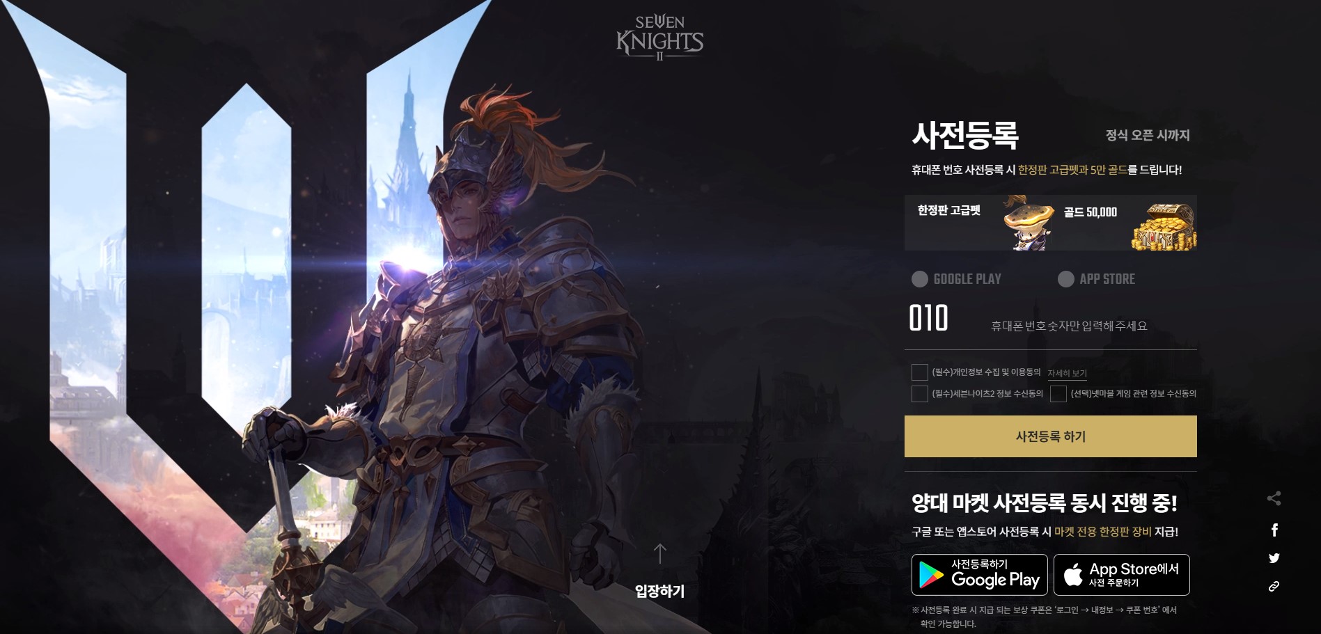 사전등록은 전화번호를 등록시 한정판 고급펫과 5만 골드를 지급합니다.