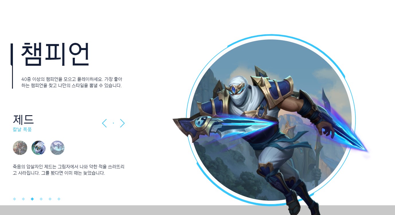 제가 좋아하는 제드는 챔피언 소개에 올라가 있습니다.