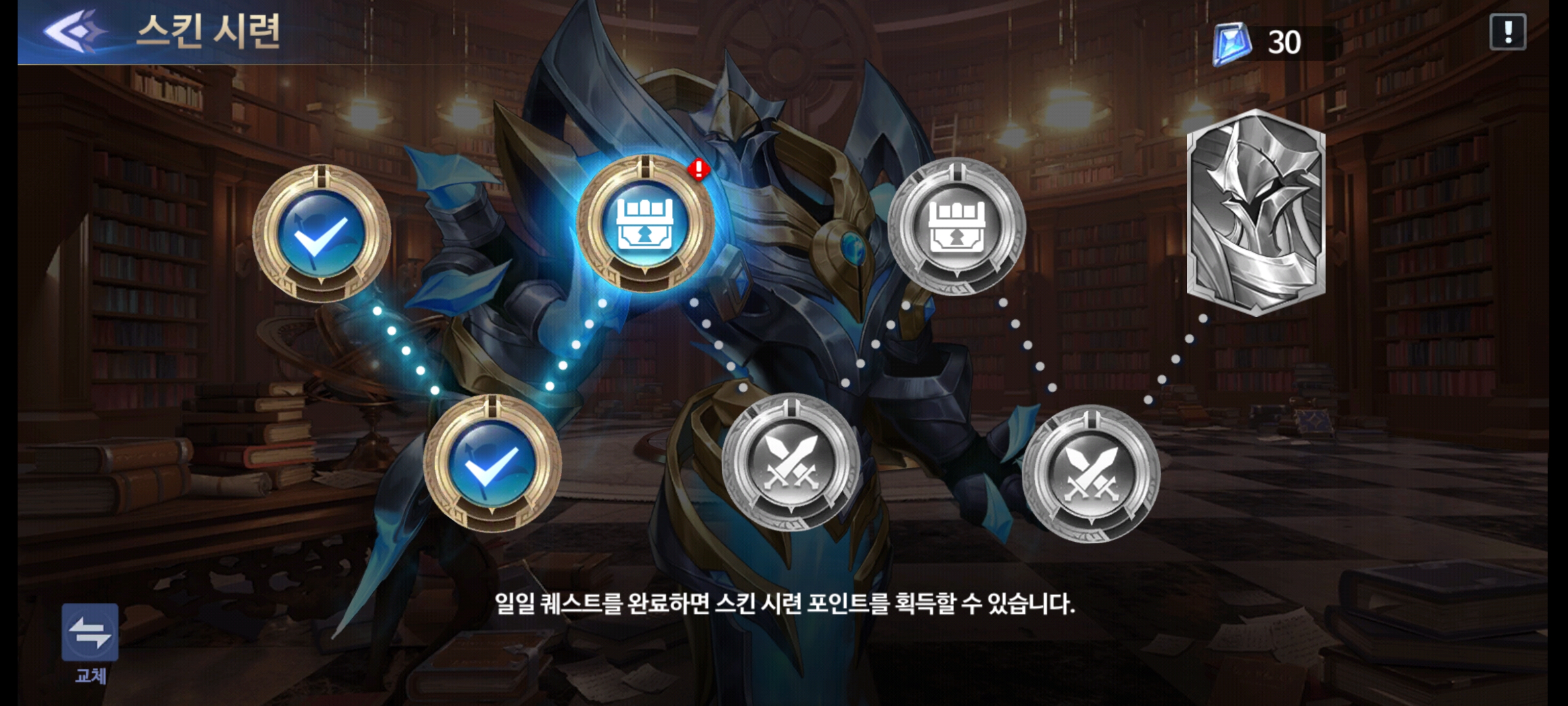 시련 포인트도 꾸준히 모으고 있습니다. 저번에는 오데트 스킨을 얻었는데 이번에는 우라노스 스킨 도전중입니다.