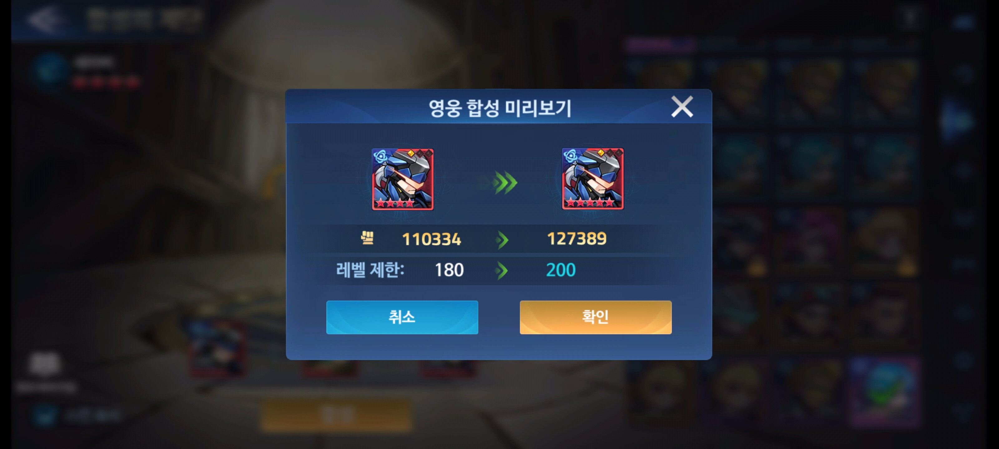 전투력은 17000 정도 올랐습니다. 레벨제한도 180레벨에서 200레벨로 올라갔네요
