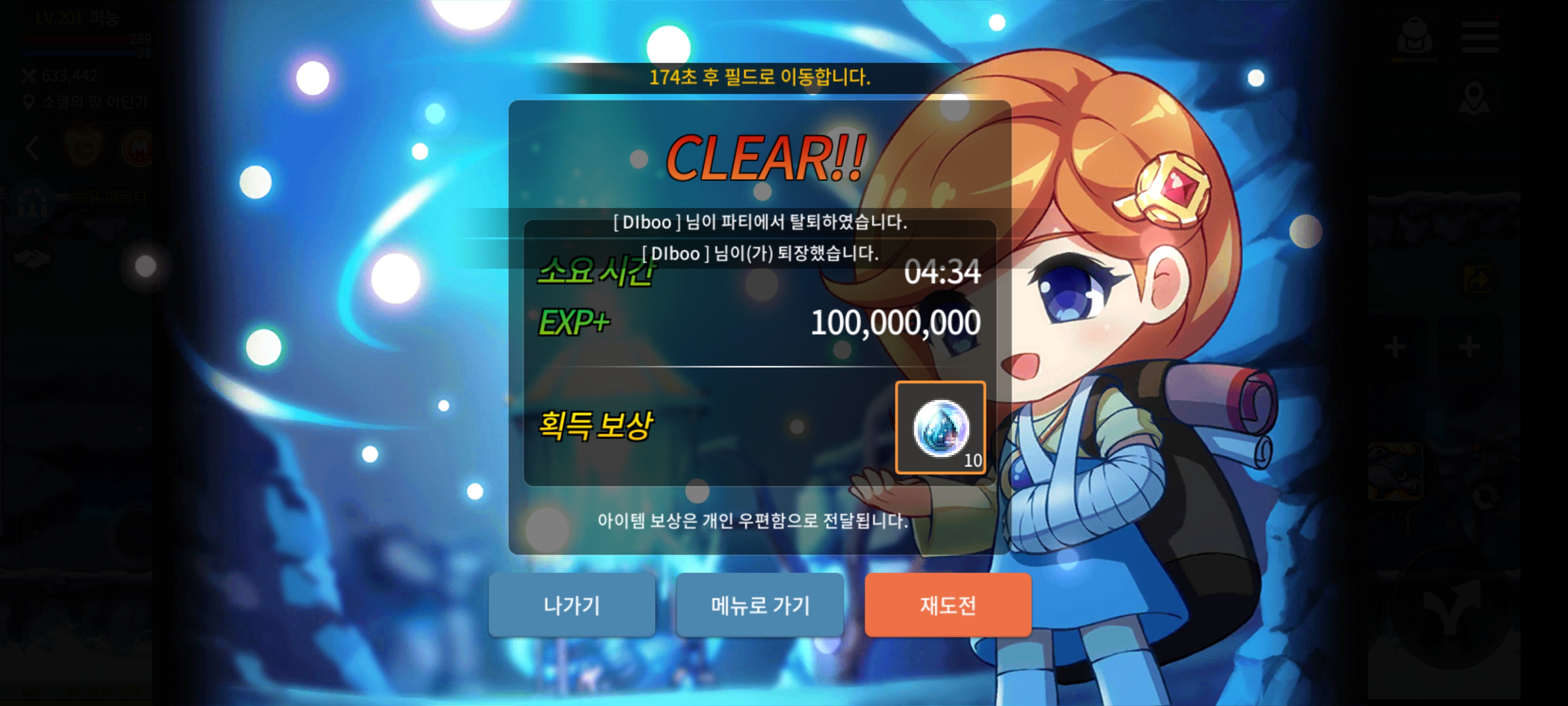 한판 클리어에 5분 가량의 시간이 소요되었구요 작은 경험치와