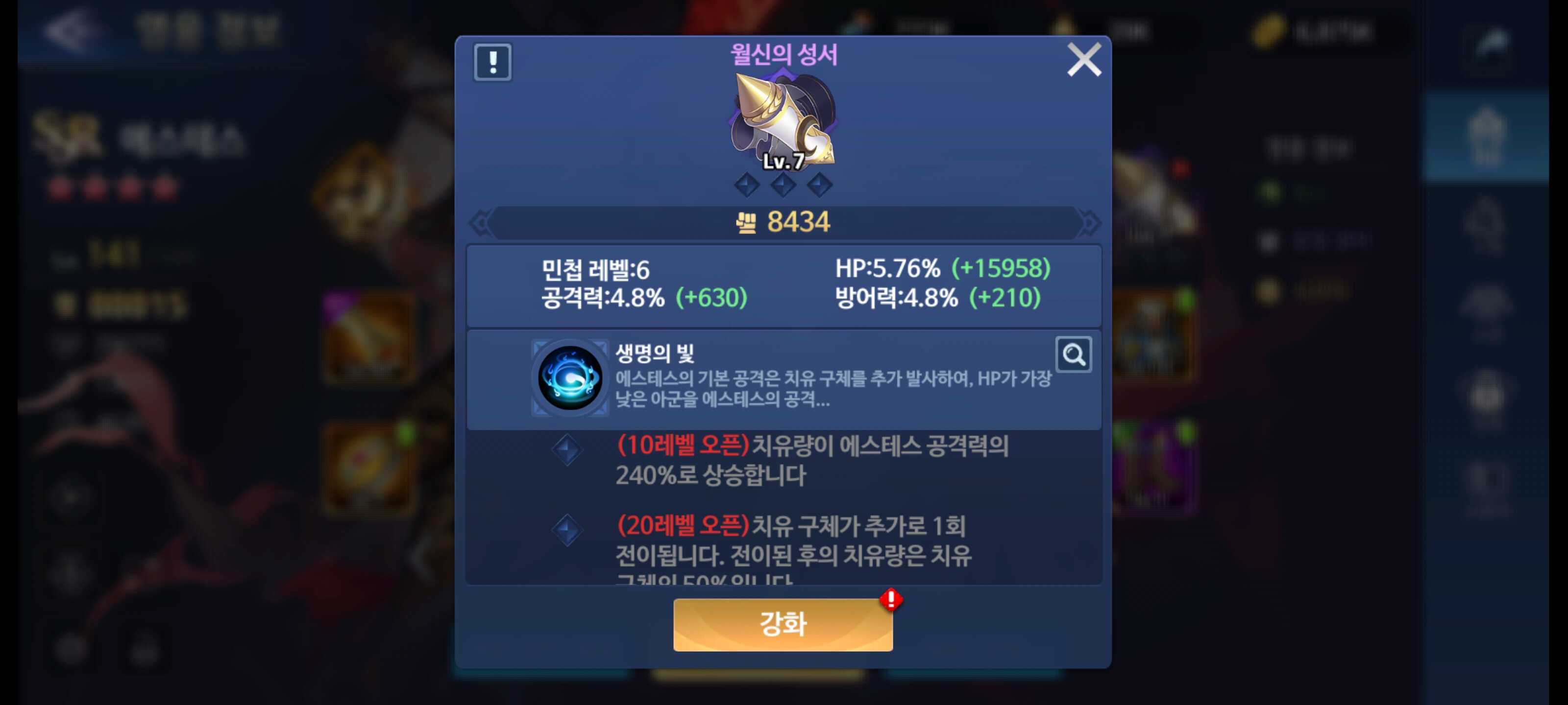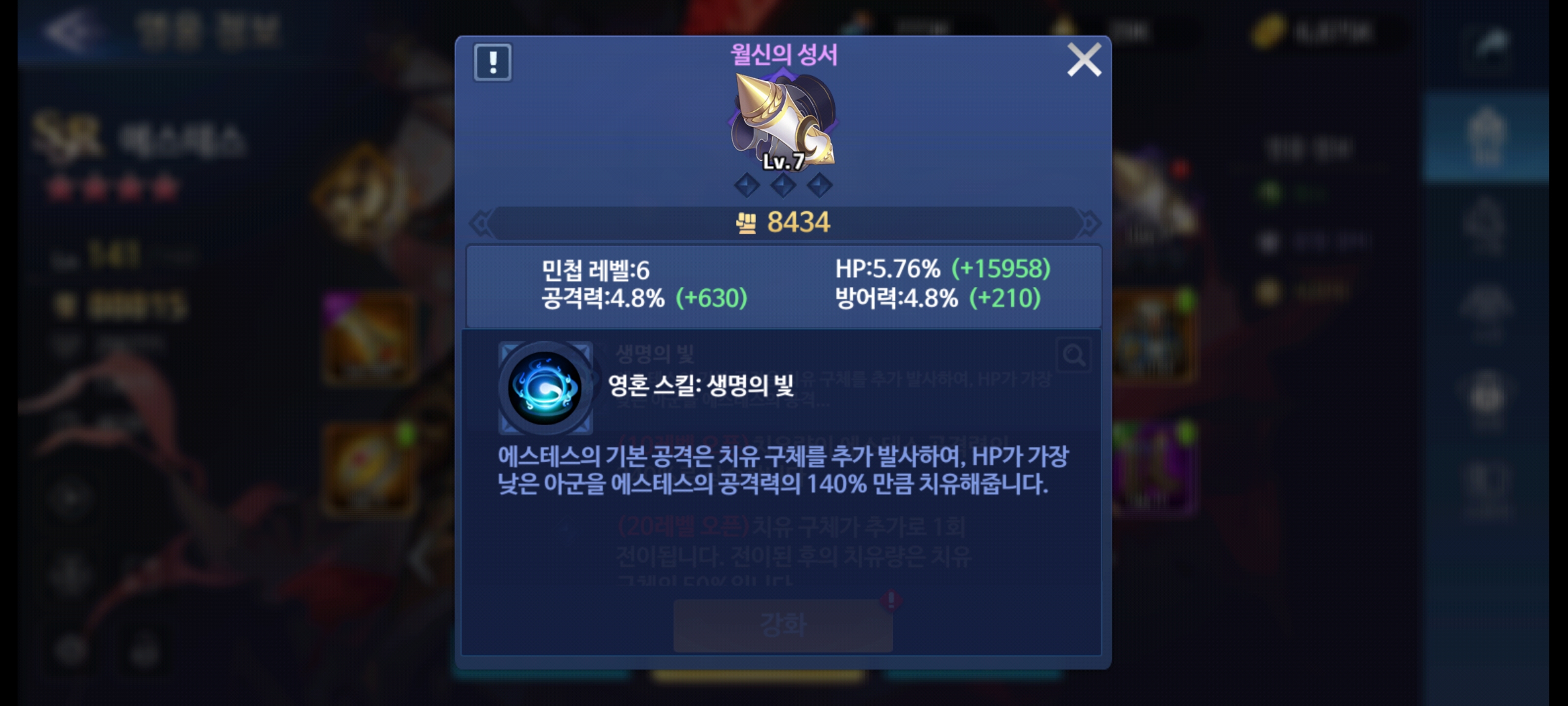 영혼무기 레벨 10을 달성하면 치유량이 에스테스 공격력의 240%로 상승됩니다.
