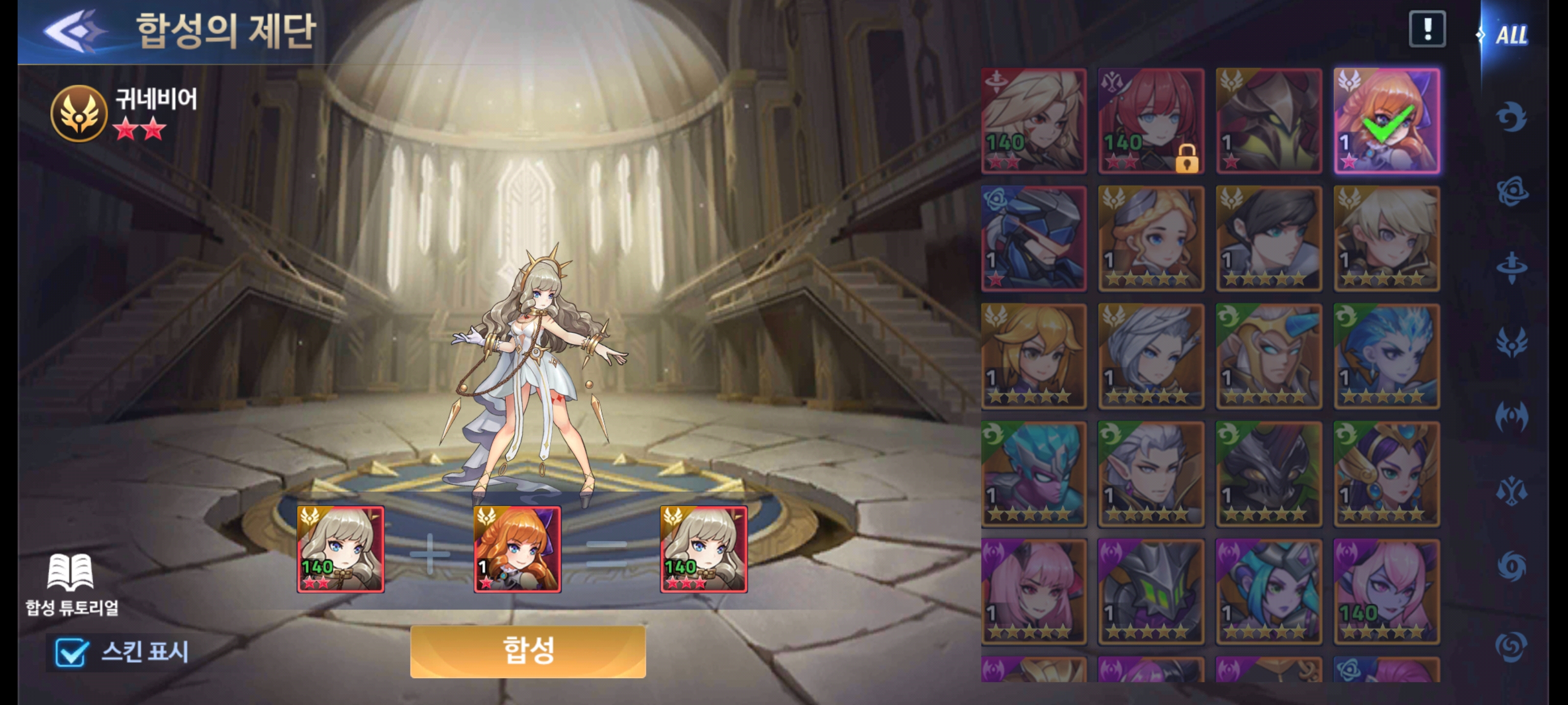 귀네비어 하나 먹어서 3성을 달성했구요