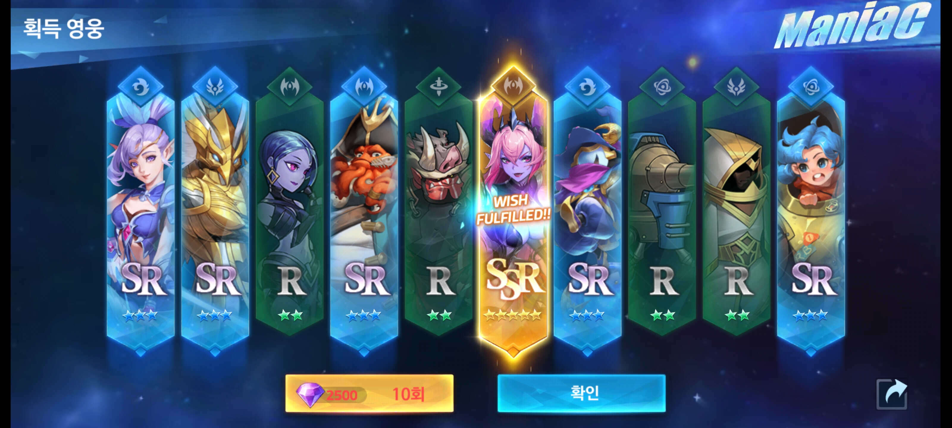 오늘 10회 뽑기 해봣는데. 셀레나가 나왔습니다. ㅋㅋ