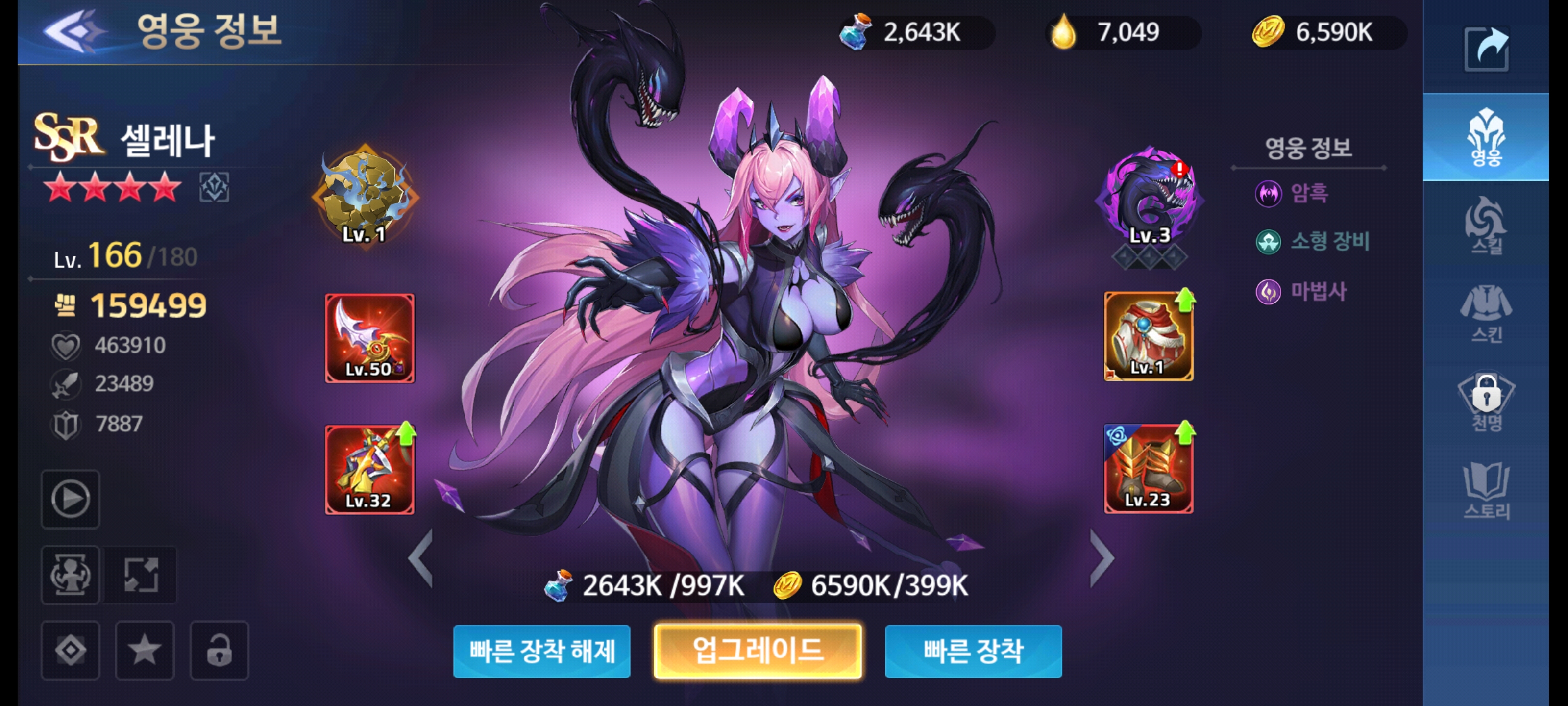 30스테이지까지 도달하면서 클리어보상으로 받은걸로 뽑기도 하고 했더니 셀레나 9성을 만들었습니다.