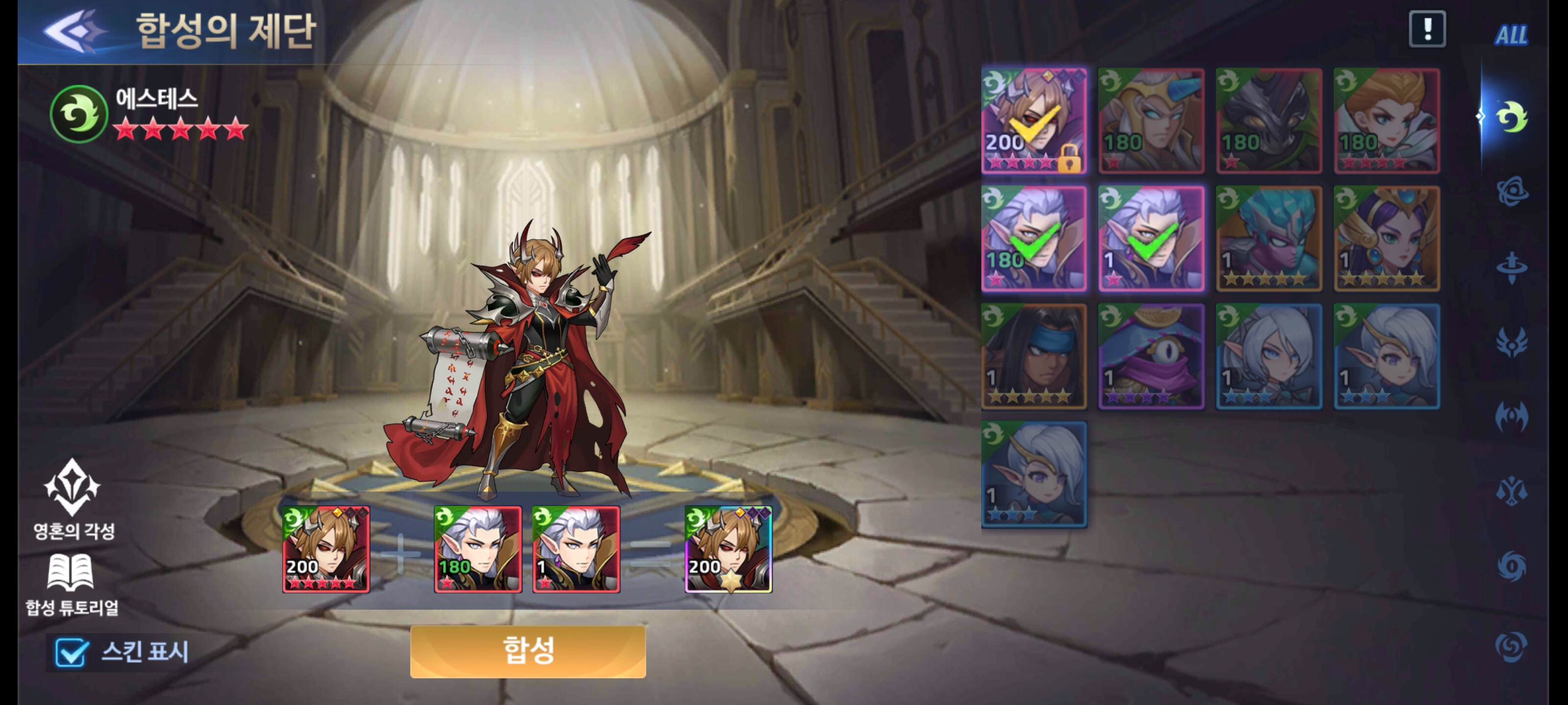 10성 에스테스에 6성 에스테스 2개를 재료로 해주면 에스테스 각성을 해줄 수 있습니다.