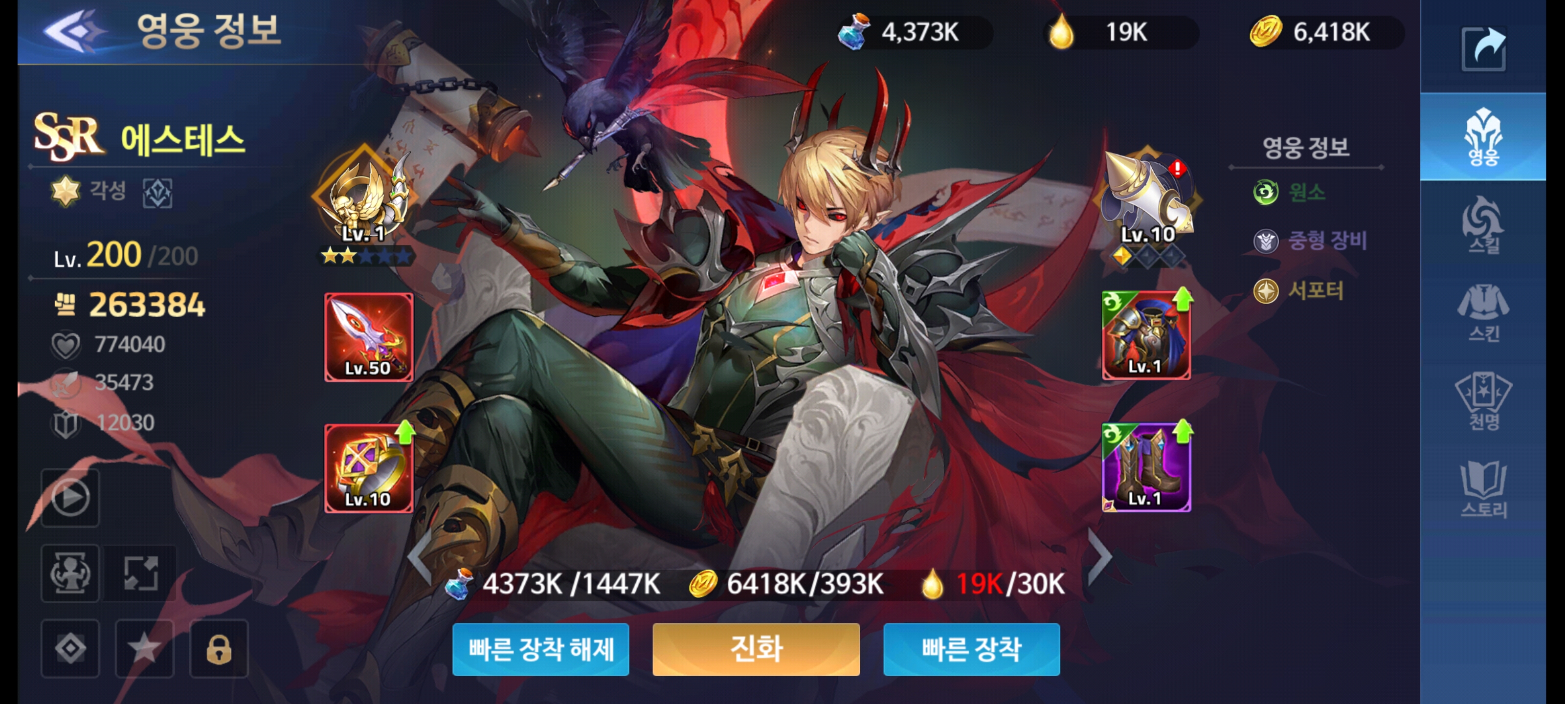 에스테스 각성입니다. 신발만 신화장비였으면 더 멋있었을텐데..