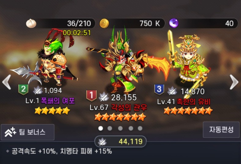 팀보너스는 영웅의 성급과는 별개로 동일한 효과를 얻습니다.