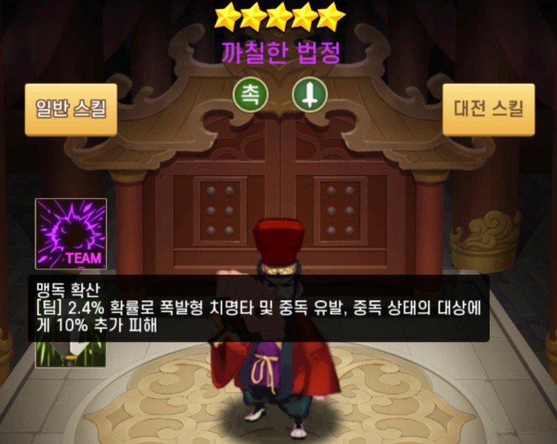 법정의 스킬이 보면 2.4% 확률로 폭발형 치명타와 중독 유발 ,