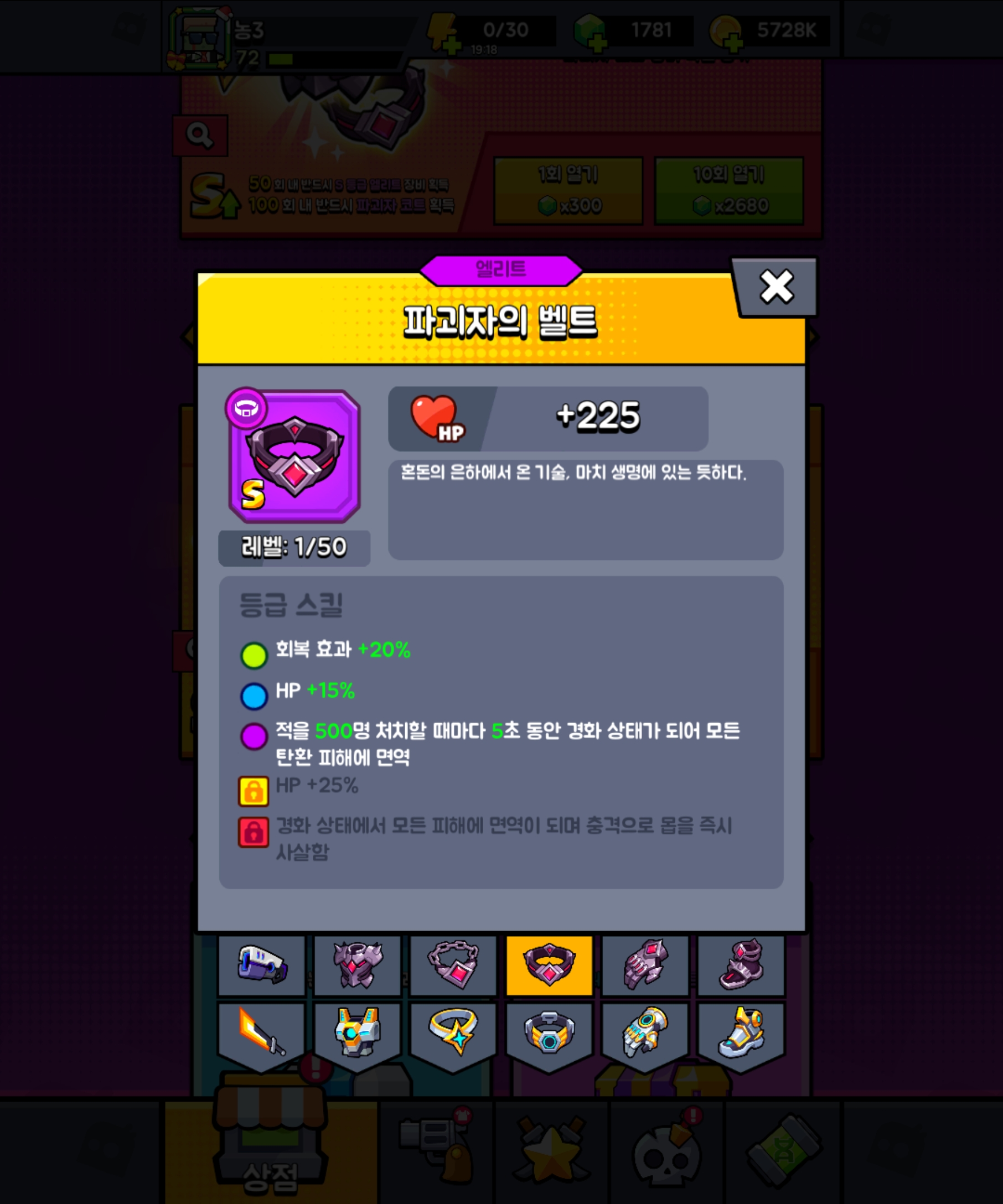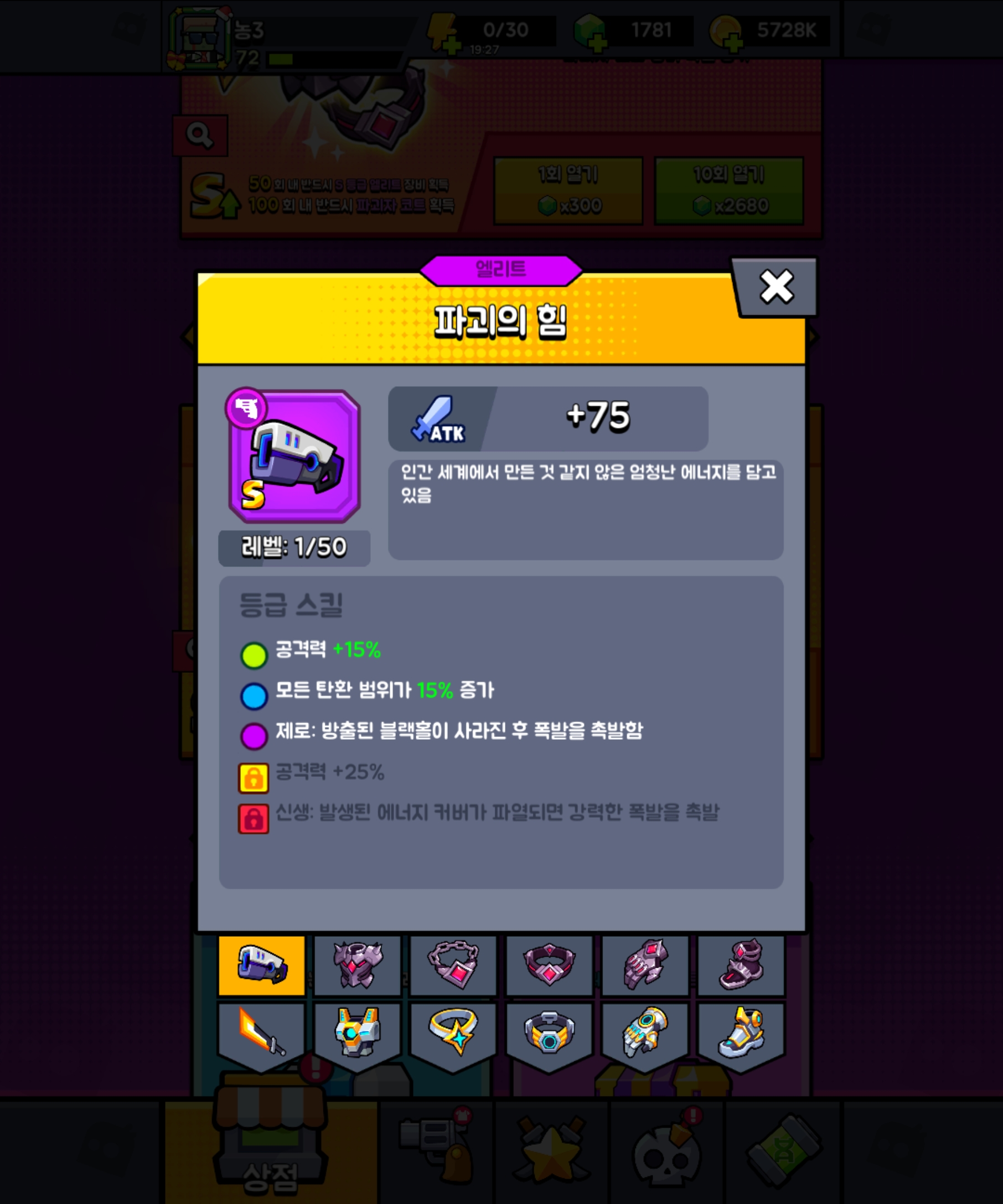 엘리트 등급시 자신의 HP 적을수록 데미지가 증가됩니다.