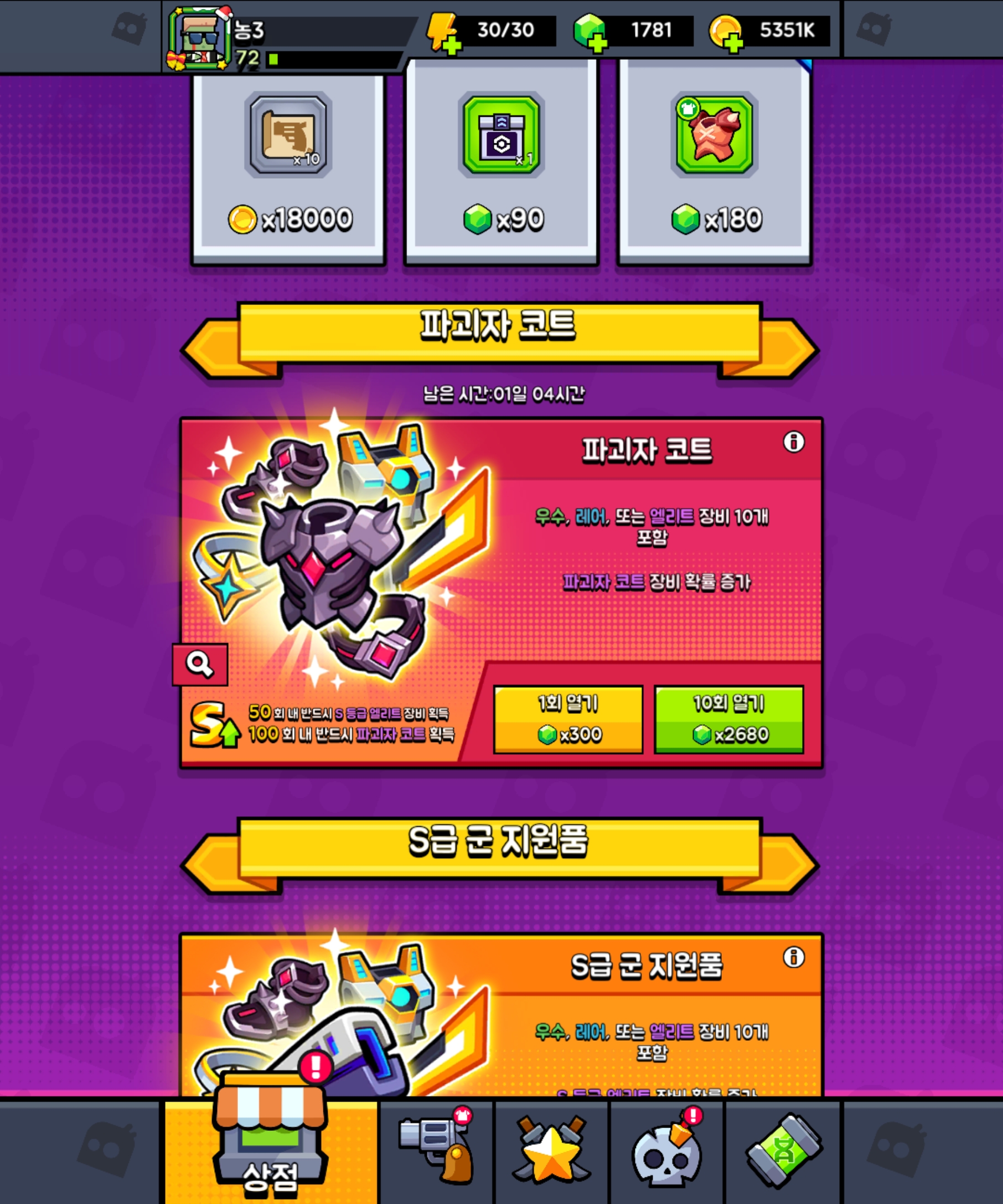 새롭게 무기랑 장비를 뽑아야한다는점이 굉장히 아쉬운 느낌입니다.