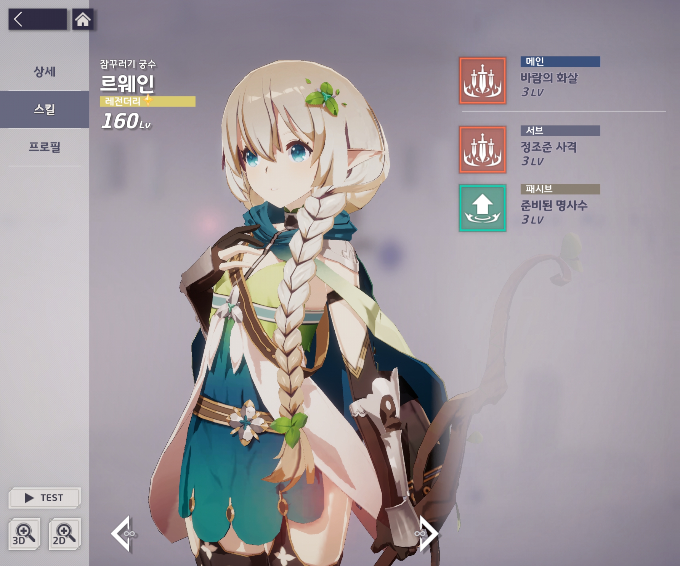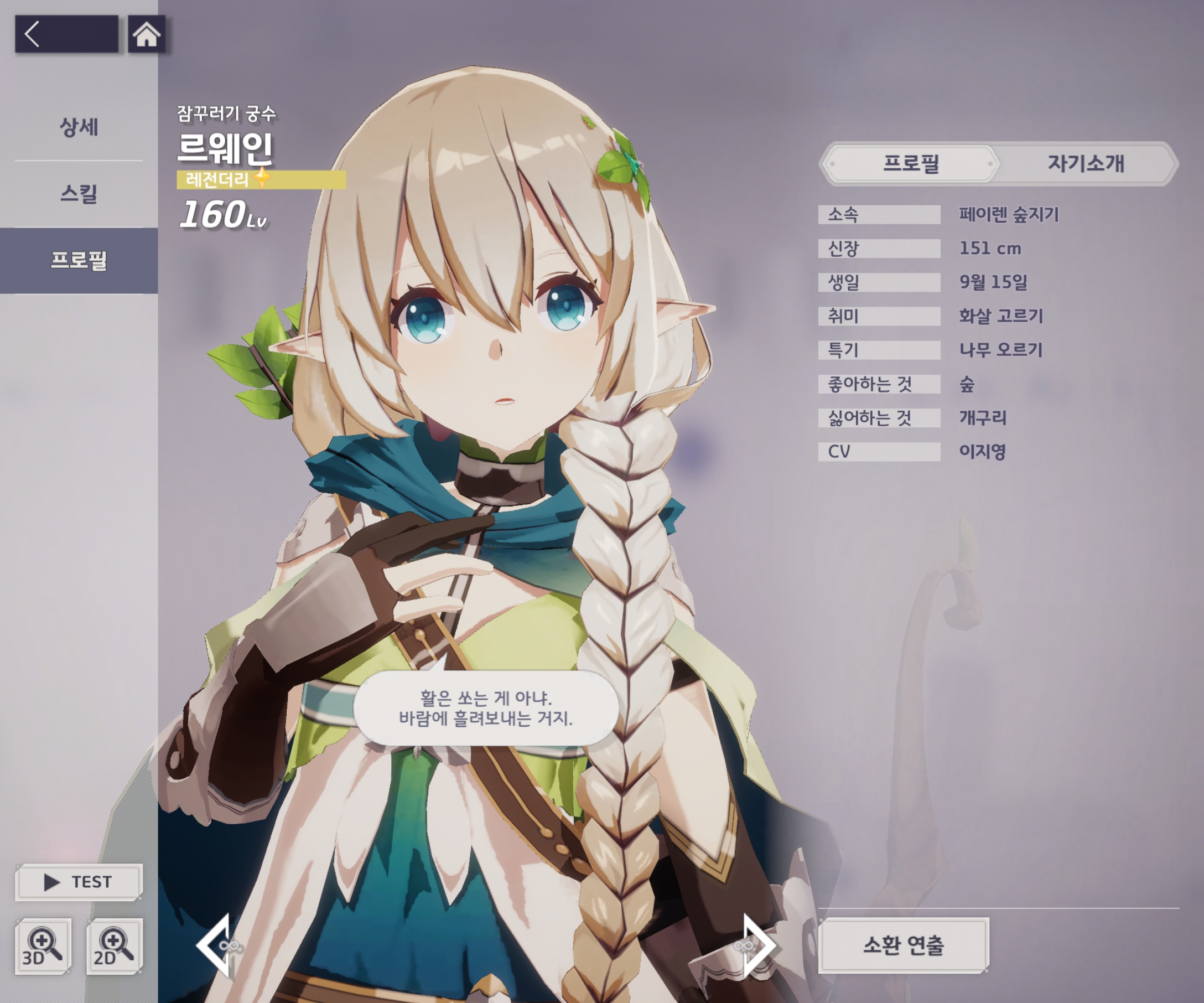 요정형 레인저 르웨인입니다. 잠꾸러기 궁수며