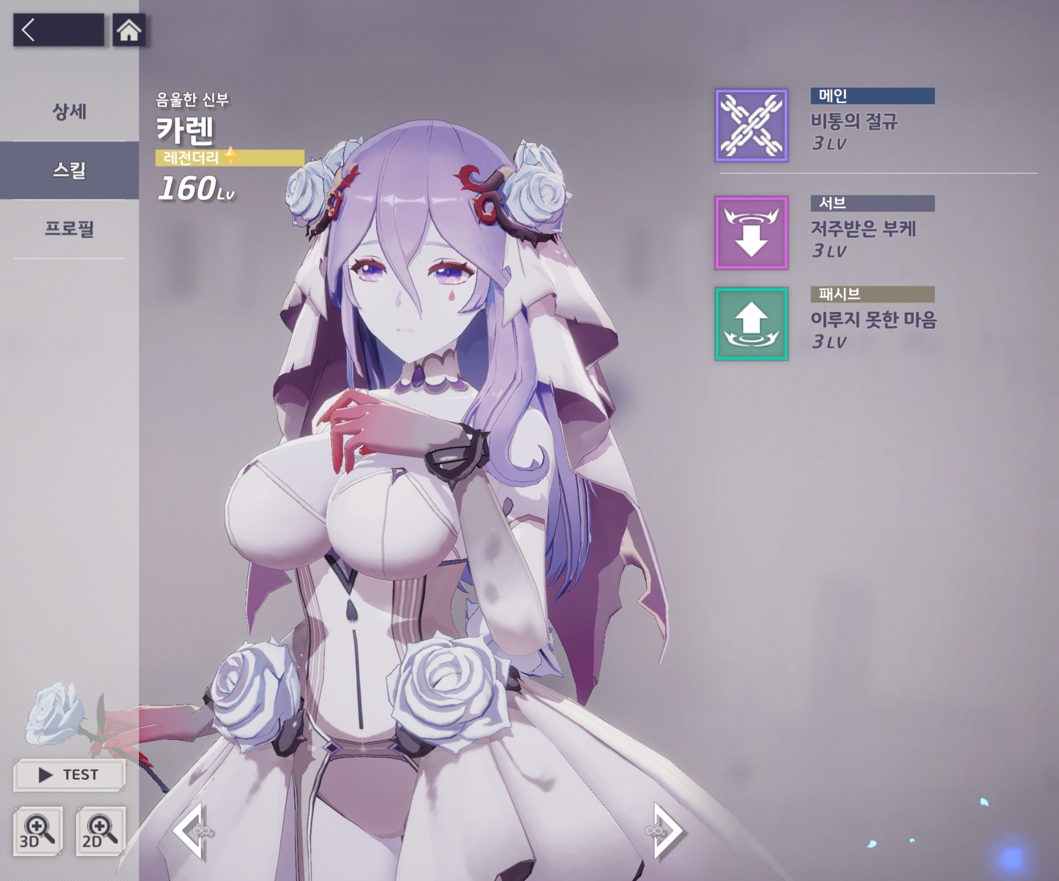 불사형 캐스터 카렌입니다. 디버프 스킬을 가지고 있습니다.
