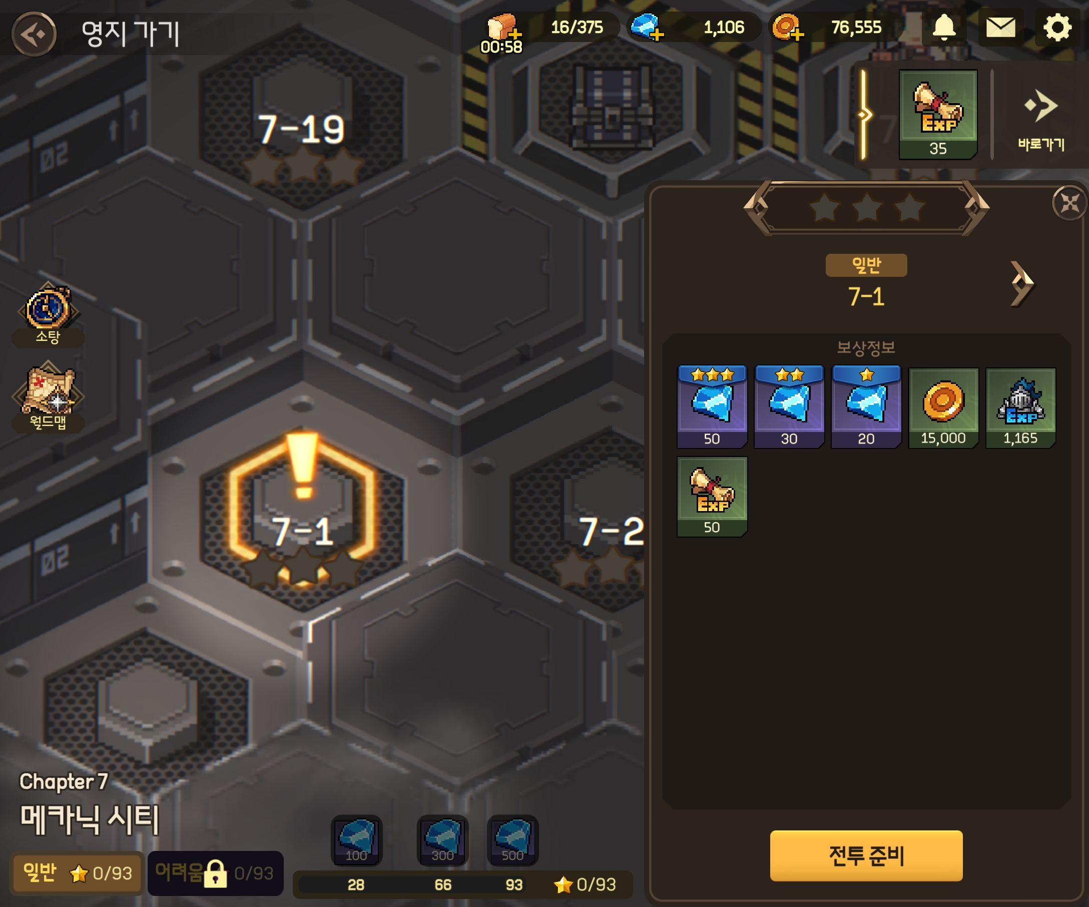 오늘 열심히 밀어서 6챕을 다밀었네요. 7챕 싹밀어야되고. 6챕 3별도 만들어야되고 할것이 많습니다.
