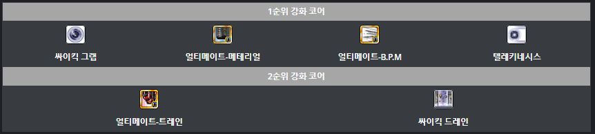1순위 강화 코어 싸이킥 그랩 , 얼티메이트-메테리얼 , 엘티메이트 BPM , 텔레키네시스