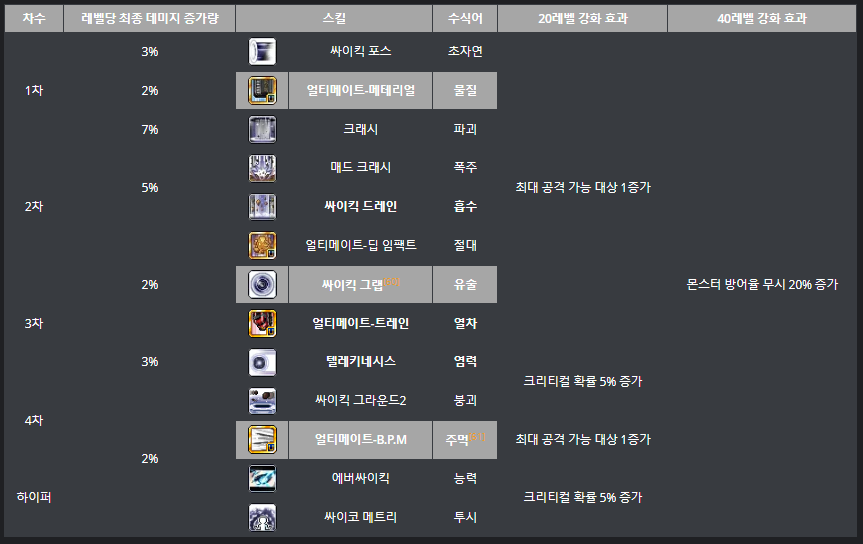 2순위 강화코어 엘티메이트-트레인 , 싸이킥 드레인