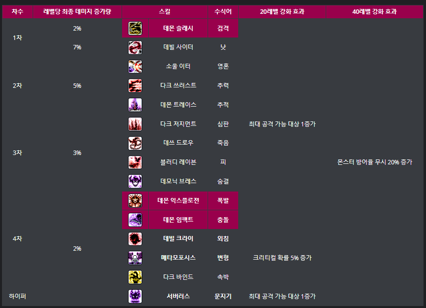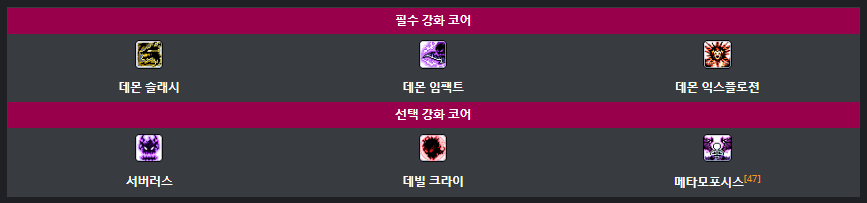 필수 강화코어는 데몬슬래시 / 데몬 임팩트 / 데몬 익스플로젼