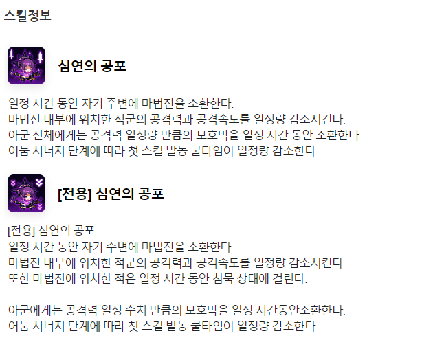 어둠 시너지 단계에 따라 첫 스킬 발동 쿨타임이 일정량 감소한다네요