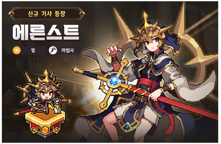빛속성 마법사 영웅인 에른스트가 나온다고 합니다. 빛의 정령을 소환해 전투를 펼치는 마법사형 전사입니다.
