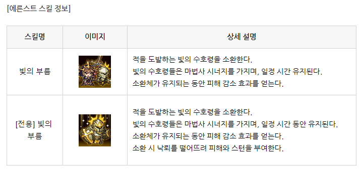 에른스트의 스킬을 살펴보겠습니다. 빛의 부름이라는 스킬입니다.