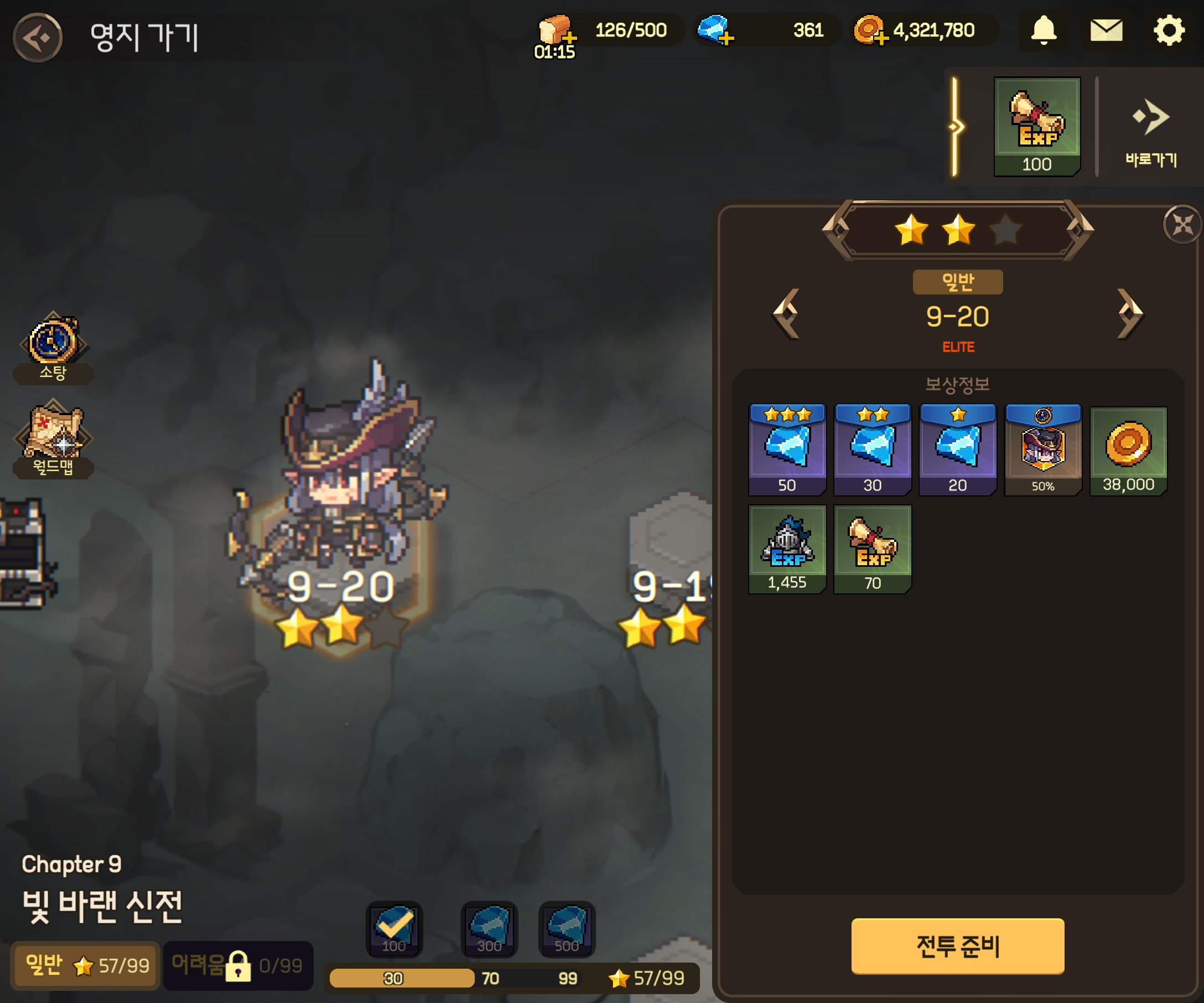 9-20 클리어는 했는데 2별이어서 아쉽네요. 그래도 전투로 하루 3번 기회있어서. 레이븐 조각 수급해볼생각입니다.