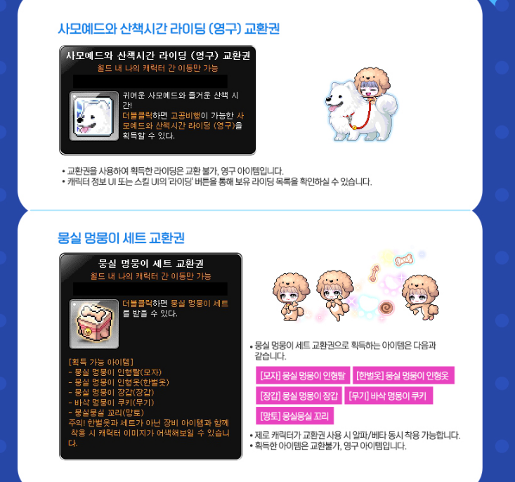 60시간 보상으로 사모예드와 산책시간 라이딩과 몽실 멍뭉이세트 교환권 , 프리미엄 pc방 장비선택권