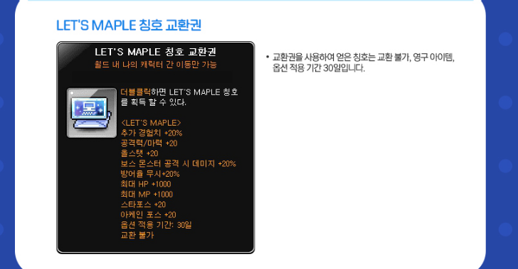 let'smaple 칭호 효과입니다. 옵션 적용기간은 30일입니다.