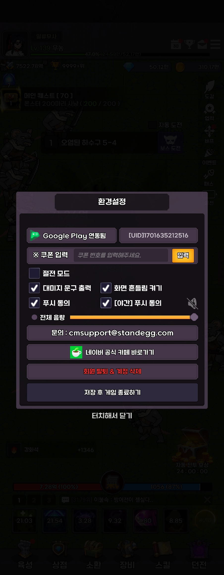쿠폰등록은 환경설정에서 쿠폰을 등록하실 수 있구요 레벨 30 달성 이후 등록할 수 있습니다.