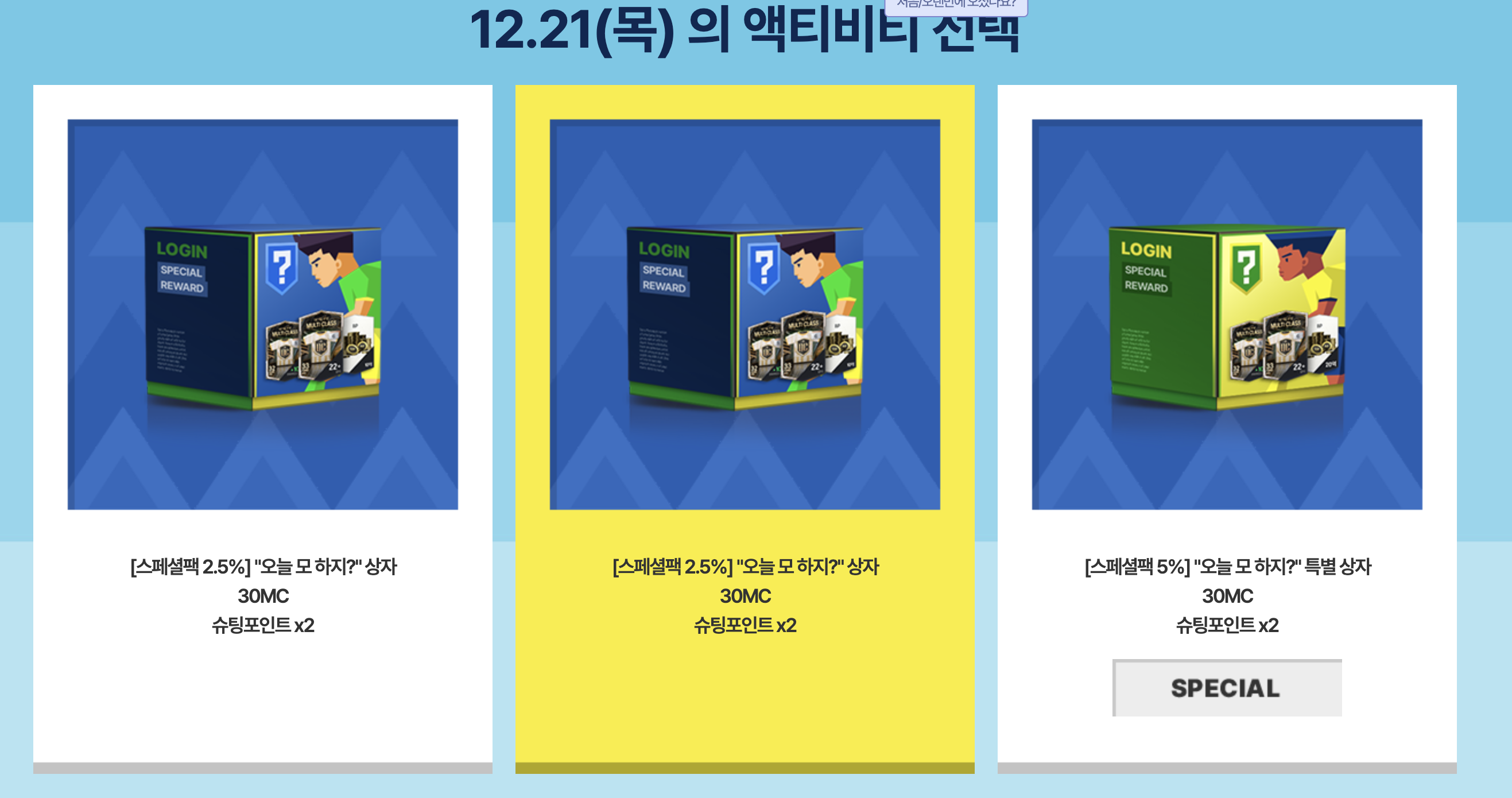 랜덤으로 보상을 받으실 수 있으며 랜덤으로 스페셜 상자를 얻으실 수 있습니다.