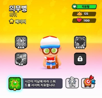 의무병입니다. 힐러 캐릭터인 의무병으로 시간이 지남에 따라 스쿼드를 서서히 치유하는 스킬을 가지고 있습니다.