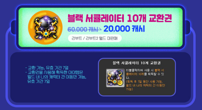 블랙 서큘레이터 10개 교환권을 2만캐시에 판매합니다.