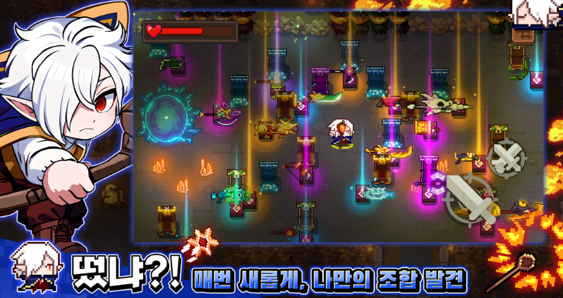 랜덤하게 생성되는 맵과 아이템들로 매번 완전히 새로운 전투가 펼쳐집니다. 불의 마법사 , 고양이 암살자 ,격투가 소녀 등 고유 스킬을 지닌 7인의 헌터를 모와볼 수 있습니다.