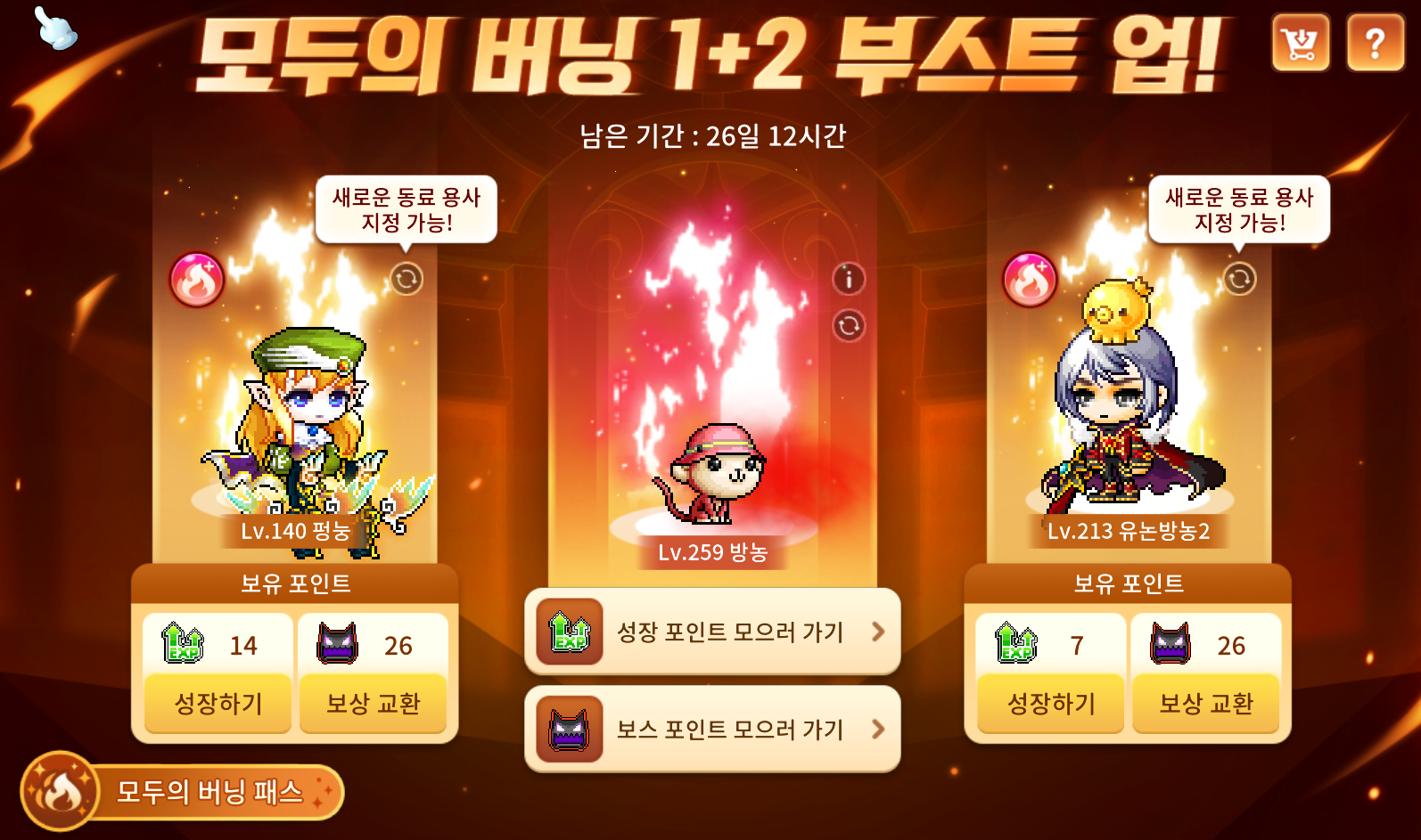 안녕하세요 농이입니다. 메이플스토리m 모두의버닝 1+2 부스트업 이벤트가 출시했습니다.