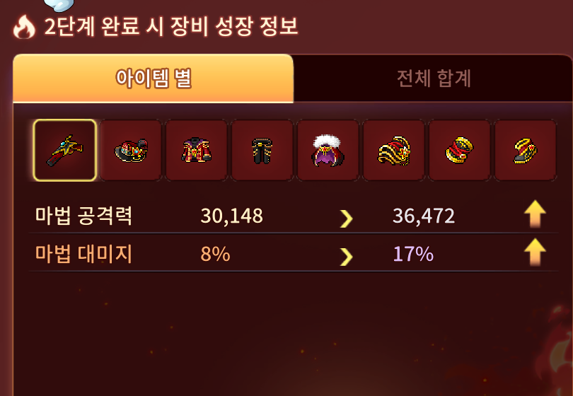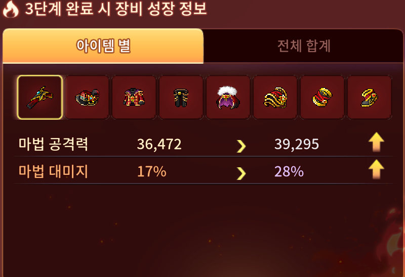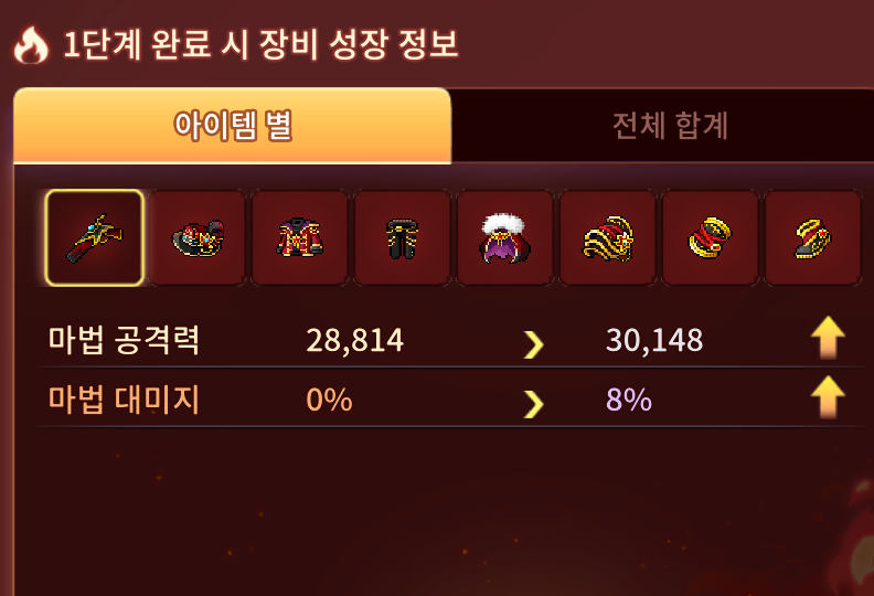 단계별로 공격력 업그레이드 하고요 최종뎀이나 , 데미지 , 최대대미지 등 보공 다 올라갑니다.